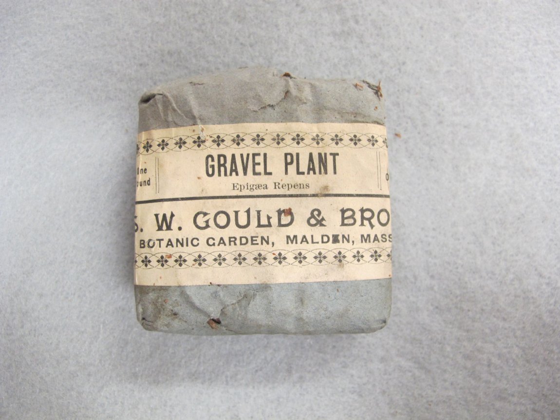 Gravel plant is used to alleviate kidney stones and bladder infections. This small packet was produced by S.W. Gould and Sons in Malden Massachusetts.