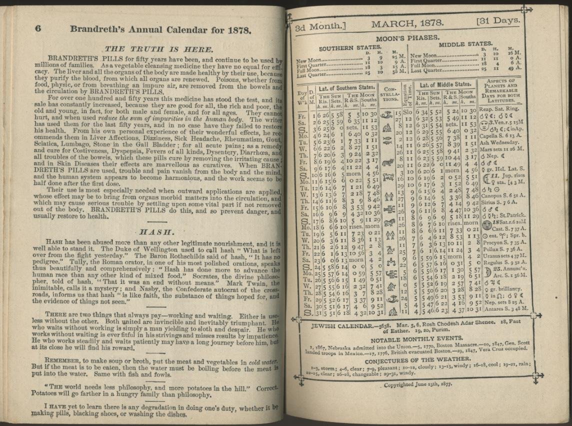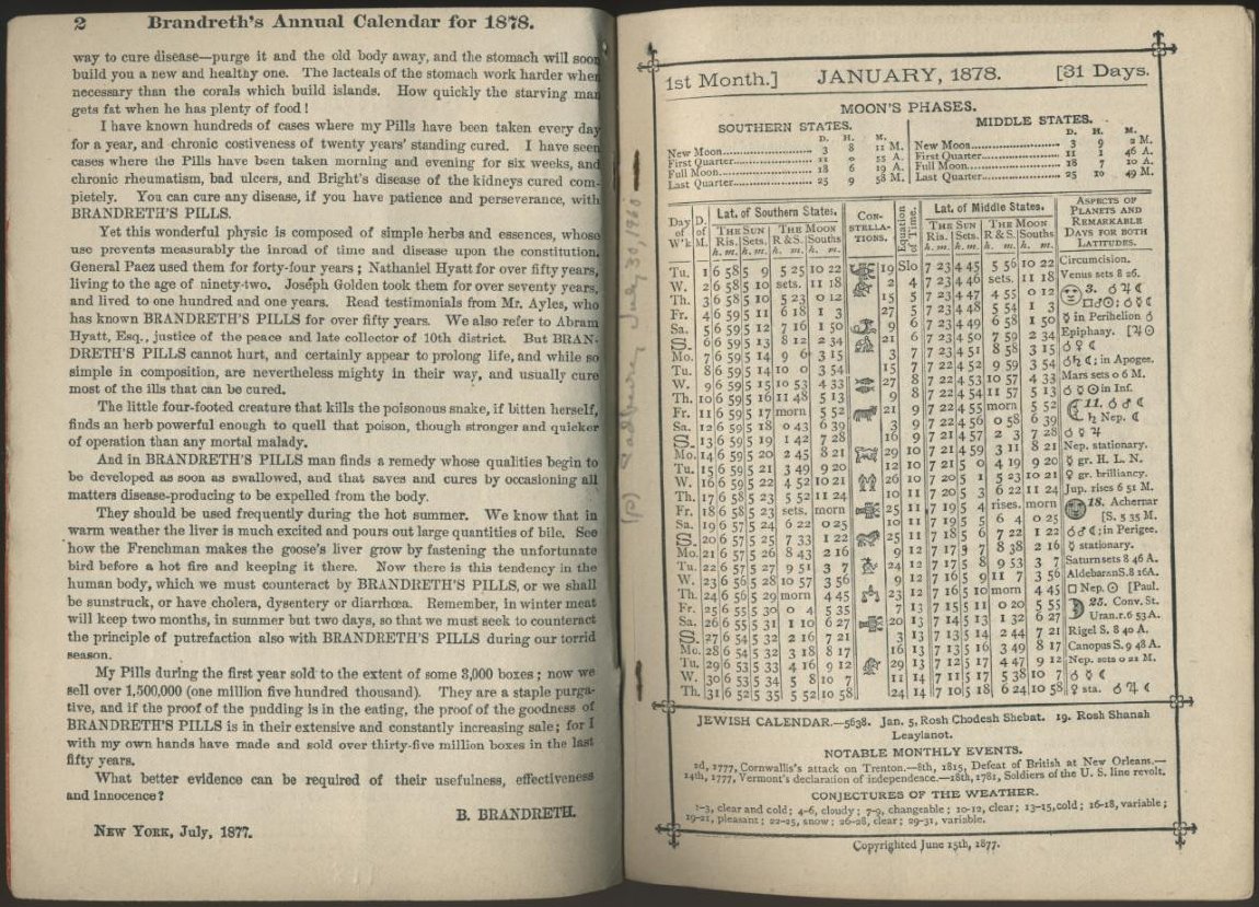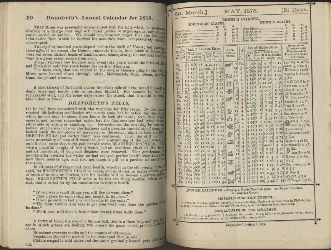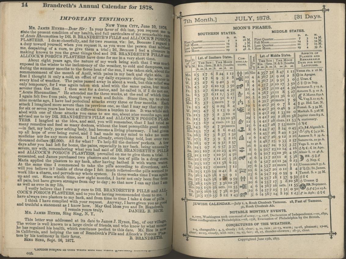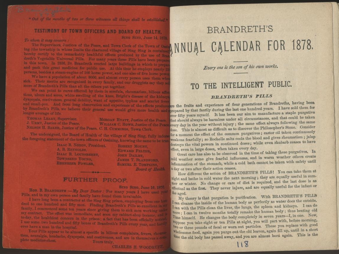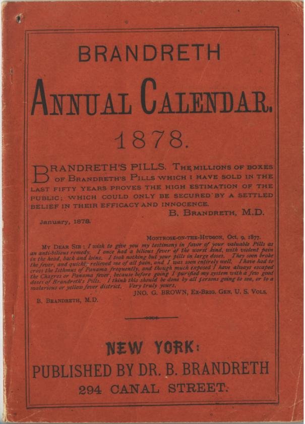 Benjamin Brandreth pioneered the use of mass advertising to market his "Vegetable Universal Pills," a cathartic touted as a treatment all manner of ills. By the 1830s he was a household name across the country. In 1852 he purchased 26,000 acres of land in the Adirondacks. Brandreth Park is still a private preserve.