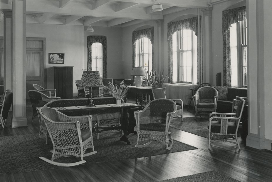 Men and women were segregated in Adirondack tuberculosis hospitals. This solarium was reserved for the use of women at the state tuberculosis hospital in Ray Brook.