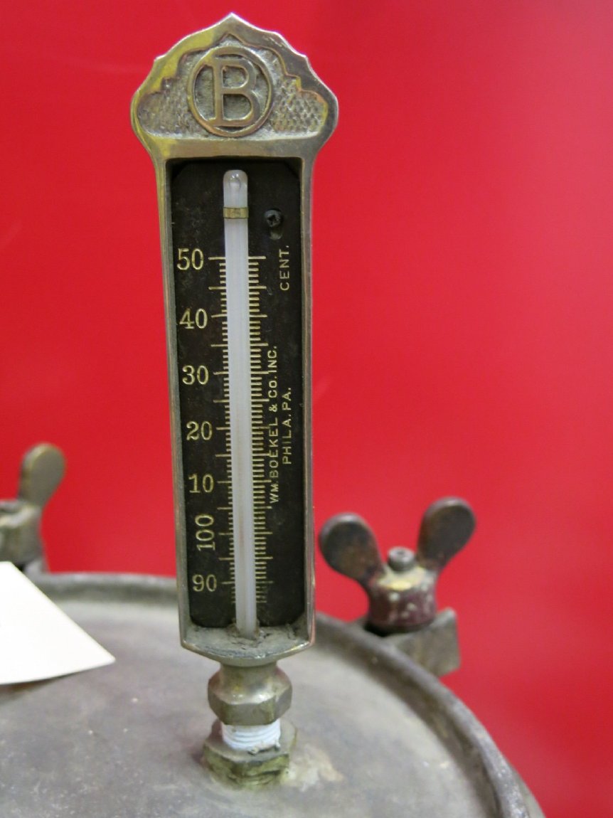 This autoclave, used to sterilize medical instruments, was used in Saranac Lake by the Consolidated Board of Health.