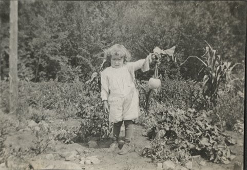 Jane Hooper helps out in the family's Garnet Hill garden. Her father, Frank, owned and operated Hooper's Garnet Mines in North River.