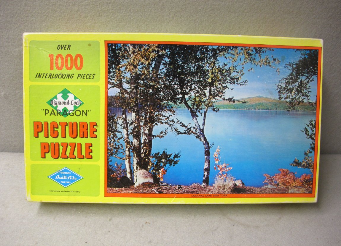 Working on a puzzle can be an absorbing pastime, one that enthusiasts suggest may also sharpen mental acuity. Warren Built Rite Toys of Lafayette, Indiana, manufactured this puzzle featuring a scenic view of one of the Saranac Lakes.