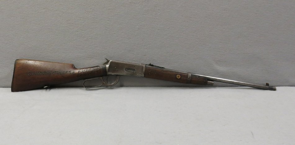 One of Gilman Selleck's most important possessions was this rifle, a Winchester Model 1894, which he purchased in 1900. He embellished the stock with his name in brass tacks. In October,1904, Selleck shipped the rifle back to the Winchester company for minor repairs.