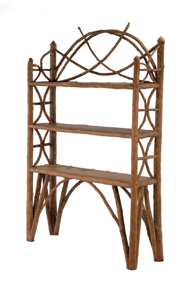 Frank W. Alger (1853-1953) served as caretaker and housepainter at Eagle Nest, and made this rustic stand for Captain and Mrs. Boris Sergievsky. Nicknamed "the Indian," the Vermont-born Alger may have been Abenaki.