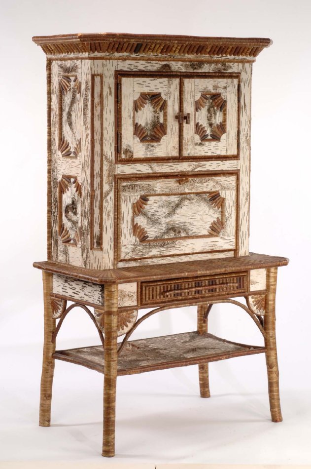 This elegant secretary exemplifies the high style rustic design for which Ernest Stowe is known. The interior is as beautifully finished as the exterior.