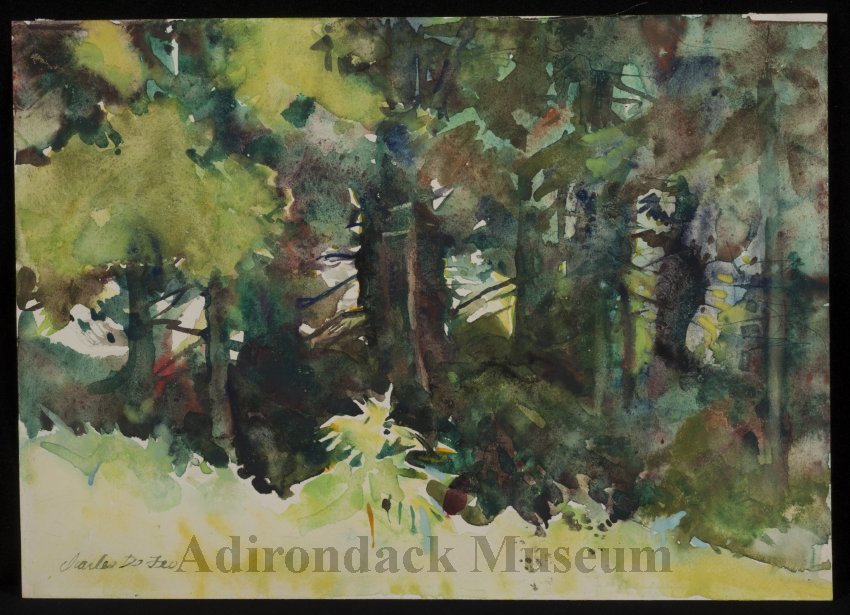 Charles DeFeo (1892-1978) was an illustrator whose work appeared in popular magazines including Cosmopolitan, McCall's, and Field and Stream, as well as pulp novels and detective, sports, and men's magazines. An avid fisherman, he often traveled to South America to fish with baseball great and friend Ted Williams. He also spent time with fellow artist Paul Bransom at Bransom's camp at Canada Lake, where he may have painted this view of a wooded landscape.