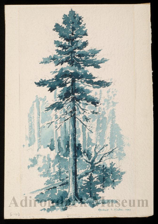 Artist Herbert Kates made this elegant sketch of a tall spruce, possibly to serve as a study for a larger studio painting.