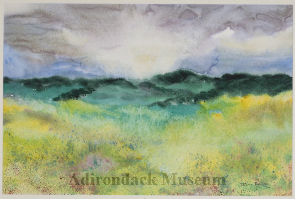 A graduate of SUNY Plattsburgh, Patricia Reynolds (1934-2015) settled in Willsboro. Daughter of a commercial artist, she painted from the age of 11. She discovered watercolors in 1972, and for the next 15 years painted with little else. The natural scenery around her Adirondack home fed her creativity: "the North Country atmosphere is a constant source of new inspiration…the glorious mists with the mountain peaks appearing and fading again. I am chiefly a studio painter, retaining a vision and interpreting the atmosphere rather than the literal landscape."