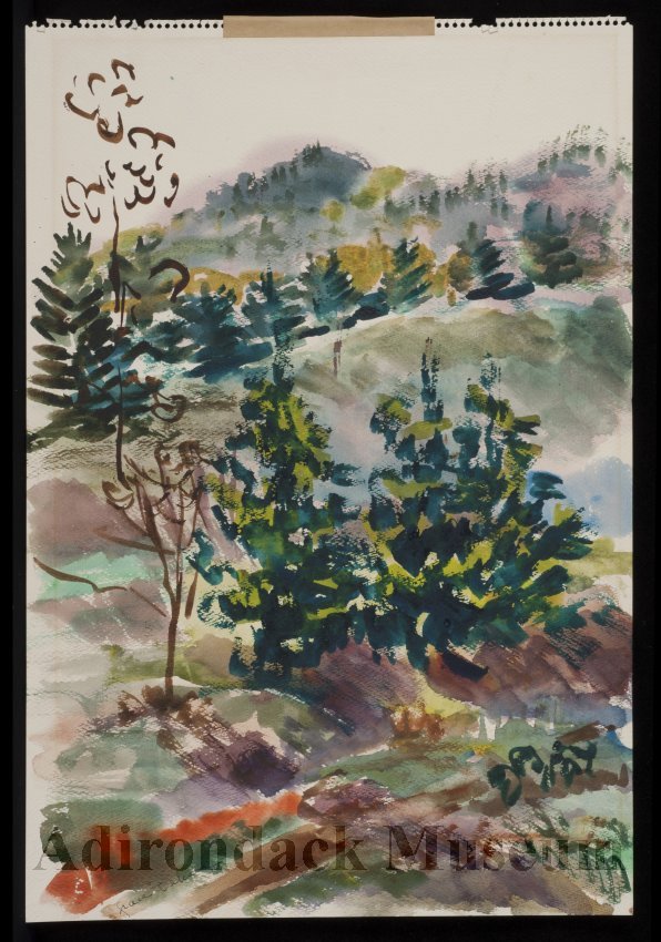 The beauty of the Adirondacks inspired artist Grace Edgbert Oehser (1901-1999) to purchase a home near Baker's Mills in 1952. Several years later she captured this view of nearby 11th Mountain.