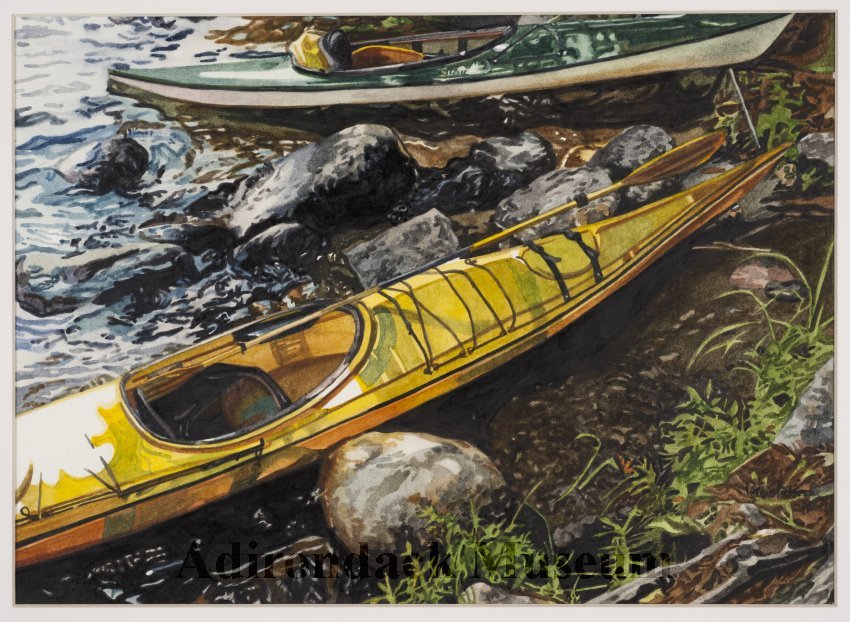 Watercolor artist Valerie Patterson (b. 1963) grew up in Ogdensburg, NY. She earned her Bachelor of Arts in Painting and Master of Arts in Elementary Education from SUNY Potsdam. When not teaching art at Saranac Lake High School, she paints in her home studio. She scatters dozens of photgraphs on the floor for inspiration, and says "I feel more like the ideas come through me rather than from me." Images of her family, friends, her dogs, and the woods and waters surrounding her home are frequent sources of inspiration.