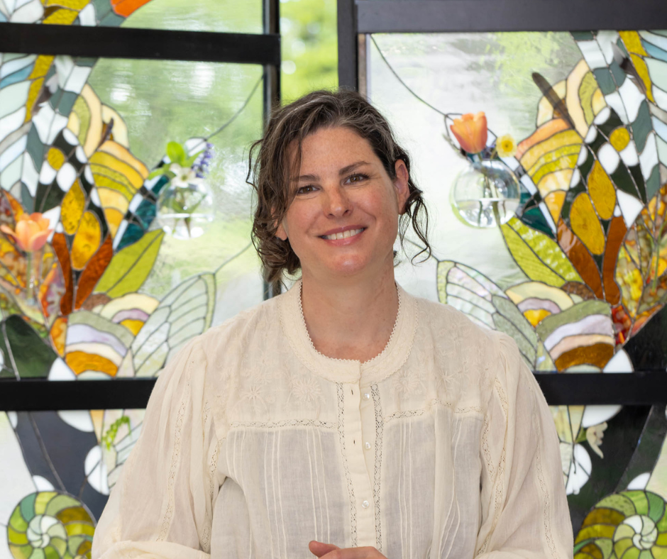 Neile Cooper elevates our humble yet vital natural environments and moments to a place of reverence by interpreting them in stained glass. Through her artwork, she shares her profound connection with nature, inspiring stewardship and encouraging the viewer to connect to their own valuable memories and experiences with nature. She is perhaps best known for The Glass Cabin in the Woods, a small structure on the artist’s New Jersey property that is entirely clad with her artwork.