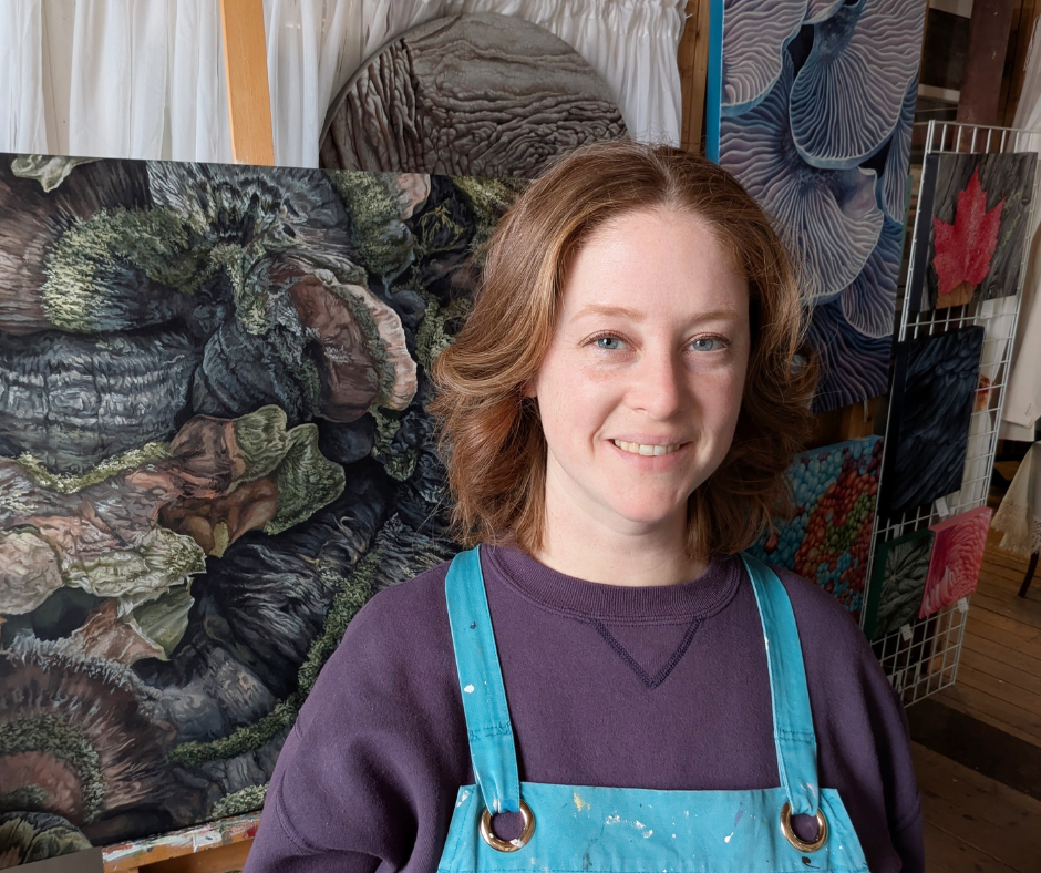 Holly Friesen creates visions from within the landscape in paint and wool. Based in Tiohtià:ke / Montréal, near the Canadian Shield and Boreal Forest, her work reflects a deep reverence for the Earth and invites a shift from harm toward a more reciprocal, life-enhancing way of living. Her work is in the permanent collection of the Adirondack Experience and currently on view in the Artists & Inspiration in the Wild exhibition.